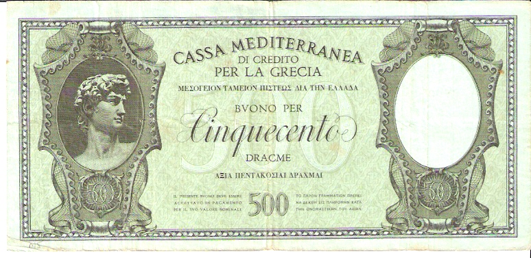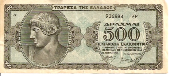 Bank of Greece  500 Drachmai  1939 - 1944 Issue  Not in circulation anymore Dimensions: 200 X 100, Type: JPEG