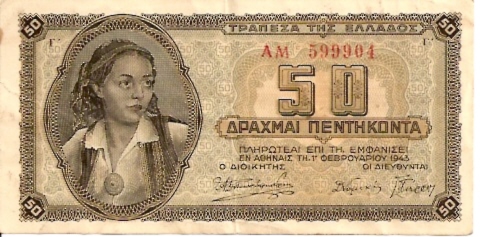 Bank of Greece  50 Drachmai  1939 - 1944 Issue  Not in circulation anymore Dimensions: 200 X 100, Type: JPEG